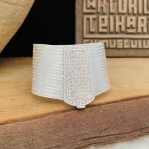 Artuklu Telkari, tarihi gümüş işleme sanatını, günümüz modern takı işlemeciliğiyle birleştirerek, tamamen müşterisine özel tasarımlar üretmektedir. Artuklu Telkari de, güvenli ve kolay alışveriş imkanı ile gümüş işleme ve altın kaplama gümüş çeşitleri bulunmaktadır. İncelediğiniz, 17 Sıra Trabzon Hasırı Gümüş Bileklik tamamen el işçiliği ile size özel üretilecektir.