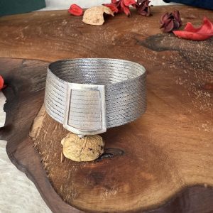 Artuklu Telkari, tarihi gümüş işleme sanatını, günümüz modern takı işlemeciliğiyle birleştirerek, tamamen müşterisine özel tasarımlar üretmektedir. Artuklu Telkari de, güvenli ve kolay alışveriş imkanı ile gümüş işleme ve altın kaplama gümüş çeşitleri bulunmaktadır. İncelediğiniz, 11 Sıra Oksitli Trabzon Hasırı Gümüş Bileklik tamamen el işçiliği ile size özel üretilecektir.