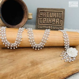 Artuklu Telkari, tarihi gümüş işleme sanatını, günümüz modern takı işlemeciliğiyle birleştirerek, tamamen müşterisine özel tasarımlar üretmektedir. Artuklu Telkari de, güvenli ve kolay alışveriş imkanı ile gümüş işleme ve altın kaplama gümüş çeşitleri bulunmaktadır. İncelediğiniz, 2 Sıra Kişniş Gümüş Kemer tamamen el işçiliği ile size özel üretilecektir.