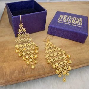 - 9 Sıralı Altın Kaplama Akıtma Bayan Küpesi modelimiz kişiye özel yapılır.