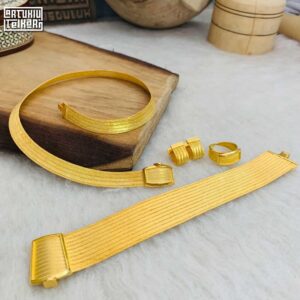 • 11 sıra bileklik, 5 sıra kolye, 5 sıra hasır küpe ve klasik yüzükten oluşmaktadır.