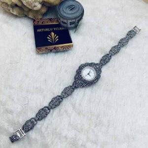 Artuklu Telkari, tarihi gümüş işleme sanatını, günümüz modern takı işlemeciliğiyle birleştirerek, tamamen müşterisine özel tasarımlar üretmektedir. Artuklu Telkari de, güvenli ve kolay alışveriş imkanı ile gümüş işleme ve altın kaplama gümüş çeşitleri bulunmaktadır. İncelediğiniz, 925 Ayar Gümüş Bayan Kol Saati bileğinize özel imal edilecektir.