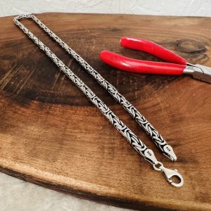 Artuklu Telkari, tarihi gümüş işleme sanatını, günümüz modern takı işlemeciliğiyle birleştirerek, tamamen müşterisine özel tasarımlar üretmektedir. Artuklu Telkari de, güvenli ve kolay alışveriş imkanı ile gümüş işleme ve altın kaplama gümüş çeşitleri bulunmaktadır. İncelediğiniz, 925 ayar gümüş erkek kral zincir kolye tamamen el işçiliği ile size özel üretilecektir.