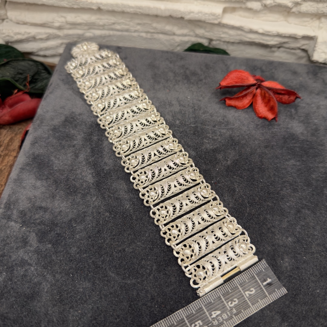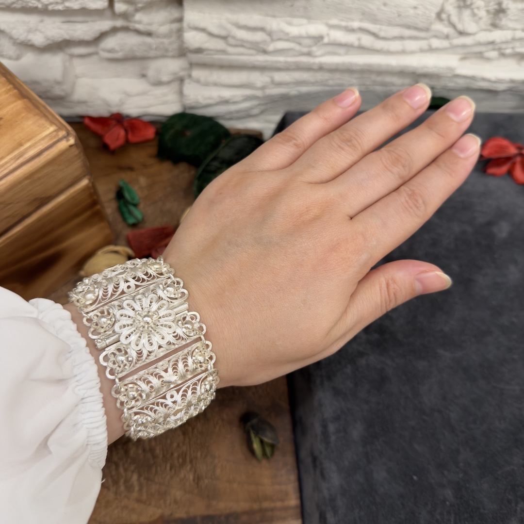 - 925 Ayar Gümüş Telkari Fişekli Bayan Bilekliği modelimiz altın işçiliğindedir.
