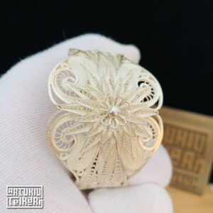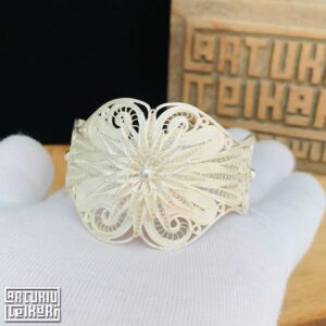 Artuklu Telkari, tarihi gümüş işleme sanatını, günümüz modern takı işlemeciliğiyle birleştirerek, tamamen müşterisine özel tasarımlar üretmektedir. Artuklu Telkari de, güvenli ve kolay alışveriş imkanı ile gümüş işleme ve altın kaplama gümüş çeşitleri bulunmaktadır. İncelediğiniz, 925 Gümüş Telkari Bilezik tamamen el işçiliği ile size özel üretilecektir.