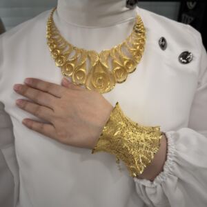 - Takı setimiz bilezik, gerdanlık ve küpeden oluşmaktadır.
