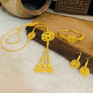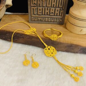 - Takı setimiz kolye, bileklik ve küpeden oluşmaktadır.