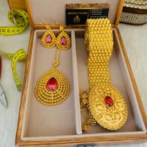 • 22 ayar altın kaplama gümüş telkari setler, geleneksel telkari sanatının zarafeti ile altının ışıltısını bir araya getirir. El işçiliğinin inceliğini taşıyan bu setler, gümüşün hafifliği ve altının göz alıcı parlaklığı sayesinde hem özel günlerde hem de günlük kullanımda şıklığı tamamlar. Geleneksel motiflerin modern tasarımlarla harmanlandığı bu telkari setler, hem estetik hem de kültürel bir değer sunar.