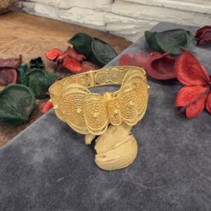 Artuklu Telkari, tarihi gümüş işleme sanatını, günümüz modern takı işlemeciliğiyle birleştirerek, tamamen müşterisine özel tasarımlar üretmektedir. Artuklu Telkari de, güvenli ve kolay alışveriş imkanı ile gümüş işleme ve altın kaplama gümüş çeşitleri bulunmaktadır. İncelediğiniz, Altın Kaplama Gümüş Fiyonklu Telkari Bilezik tamamen el işçiliği ile size özel üretilecektir.