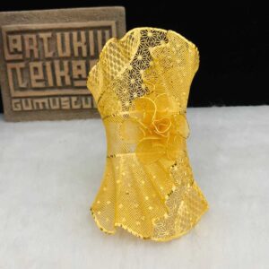 Artuklu Telkari, tarihi gümüş işleme sanatını, günümüz modern takı işlemeciliğiyle birleştirerek, tamamen müşterisine özel tasarımlar üretmektedir. Artuklu Telkari de, güvenli ve kolay alışveriş imkanı ile gümüş işleme ve altın kaplama gümüş çeşitleri bulunmaktadır. İncelediğiniz, Altın Kaplama Gümüş Fizyon Gelin Seti tamamen el işçiliği ile size özel üretilecektir.