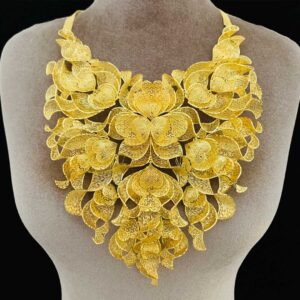 Artuklu Telkari, tarihi gümüş işleme sanatını, günümüz modern takı işlemeciliğiyle birleştirerek, tamamen müşterisine özel tasarımlar üretmektedir. Artuklu Telkari de, güvenli ve kolay alışveriş imkanı ile gümüş işleme ve altın kaplama gümüş çeşitleri bulunmaktadır. İncelediğiniz, Altın Kaplama Gümüş Füzyon Bayan Set tamamen el işçiliği ile size özel üretilecektir.