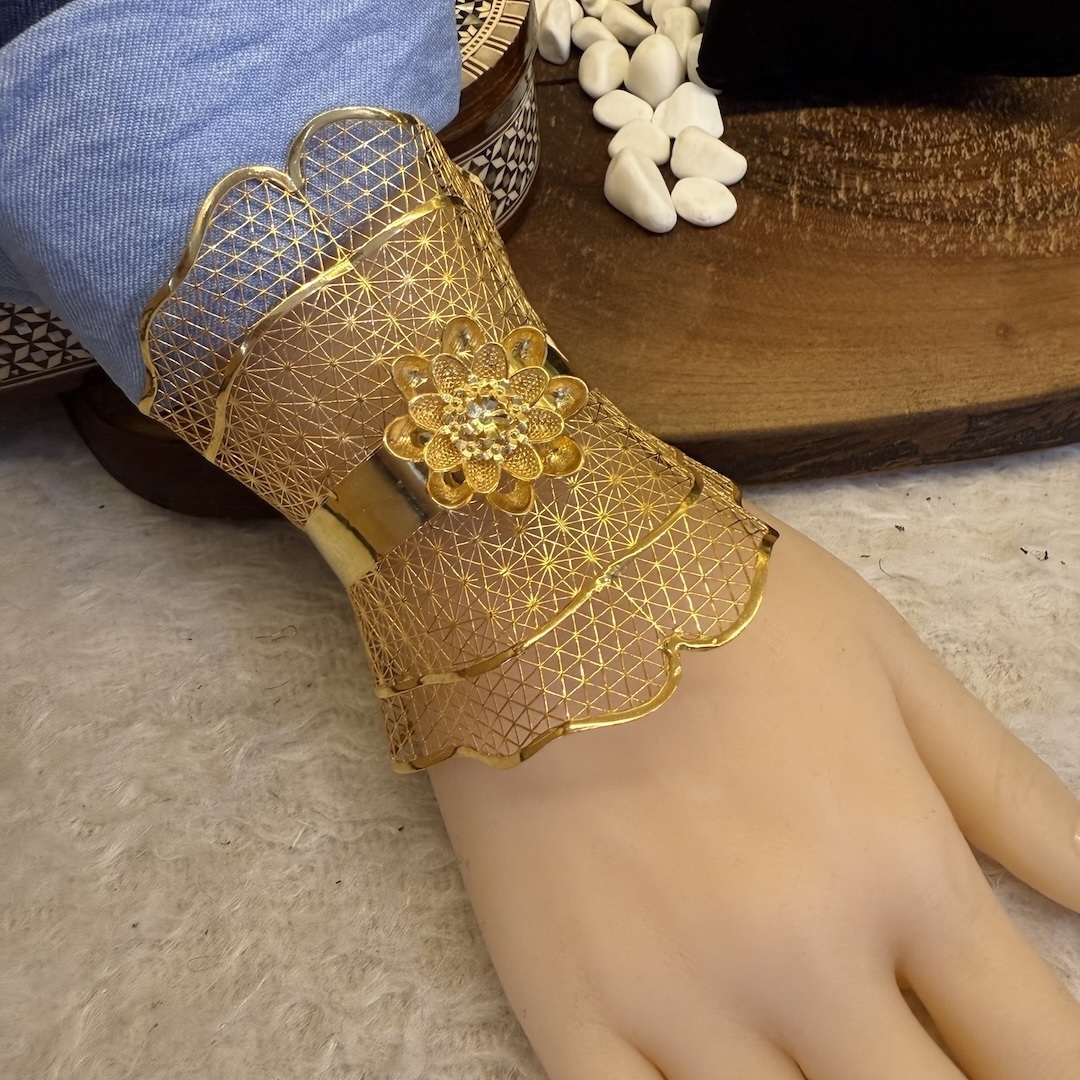 Altın Kaplama Çiçek Desenli Trabzon Bileklik