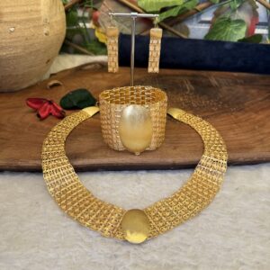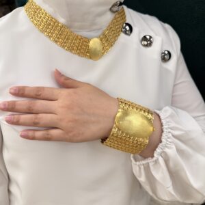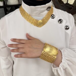 Artuklu Telkari, tarihi gümüş işleme sanatını, günümüz modern takı işlemeciliğiyle birleştirerek, tamamen müşterisine özel tasarımlar üretmektedir. Artuklu Telkari de, güvenli ve kolay alışveriş imkanı ile gümüş işleme ve altın kaplama gümüş çeşitleri bulunmaktadır. İncelediğiniz, Altın Kaplama Gümüş Gelin Takı Seti tamamen el işçiliği ile size özel üretilecektir.