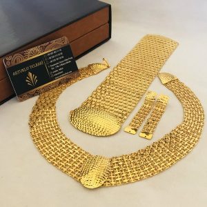 - Takı seti 5 sıra kolye, 10 sıra bileklik ve küpeden oluşmaktadır.