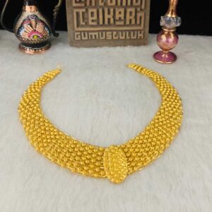 Artuklu Telkari, tarihi gümüş işleme sanatını, günümüz modern takı işlemeciliğiyle birleştirerek, tamamen müşterisine özel tasarımlar üretmektedir. Artuklu Telkari de, güvenli ve kolay alışveriş imkanı ile gümüş işleme ve altın kaplama gümüş çeşitleri bulunmaktadır. İncelediğiniz, Altın Kaplama Kişniş Hasır Set tamamen el işçiliği ile size özel üretilecektir.