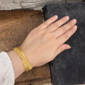 Artuklu Telkari, tarihi gümüş işleme sanatını, günümüz modern takı işlemeciliğiyle birleştirerek, tamamen müşterisine özel tasarımlar üretmektedir. Artuklu Telkari de, güvenli ve kolay alışveriş imkanı ile gümüş işleme ve altın kaplama gümüş çeşitleri bulunmaktadır. İncelediğiniz, Altın Kaplama Örgülü Dorika Gümüş Bileklik tamamen el işçiliği ile size özel üretilecektir.