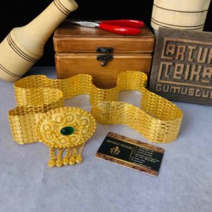 Artuklu Telkari, tarihi gümüş işleme sanatını, günümüz modern takı işlemeciliğiyle birleştirerek, tamamen müşterisine özel tasarımlar üretmektedir. Artuklu Telkari de, güvenli ve kolay alışveriş imkanı ile gümüş işleme ve altın kaplama gümüş çeşitleri bulunmaktadır. İncelediğiniz, Altın Kaplama Yeşil Taşlı Gümüş Kemer tamamen el işçiliği ile size özel üretilecektir.