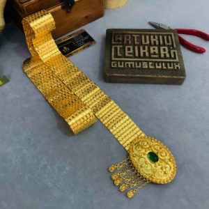 - Altın Kaplama Yeşil Taşlı Gümüş Kemer modelimiz kişiye özel yapılır.