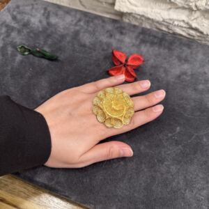 Artuklu Telkari, tarihi gümüş işleme sanatını, günümüz modern takı işlemeciliğiyle birleştirerek, tamamen müşterisine özel tasarımlar üretmektedir. Artuklu Telkari de, güvenli ve kolay alışveriş imkanı ile gümüş işleme ve altın kaplama gümüş çeşitleri bulunmaktadır. İncelediğiniz, Altın Modeli Gümüş Gelin Tülü Fizyon Yüzük tamamen el işçiliği ile size özel üretilecektir.