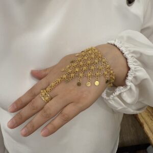 Artuklu Telkari, tarihi gümüş işleme sanatını, günümüz modern takı işlemeciliğiyle birleştirerek, tamamen müşterisine özel tasarımlar üretmektedir. Artuklu Telkari de, güvenli ve kolay alışveriş imkanı ile gümüş işleme ve altın kaplama gümüş çeşitleri bulunmaktadır. İncelediğiniz, Altın Modeli Gümüş Pullu Bayan Şahmeran Bileklik tamamen el işçiliği ile size özel üretilecektir.