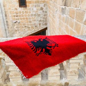 • Arnavutluk Bayrağı Tiftik Dokumalı Duvar Halısı modelimiz kişiye özel yapılır.