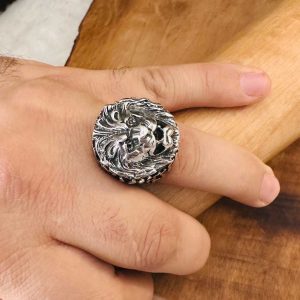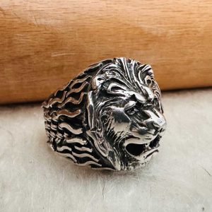- Aslan Başlı Gümüş İşlemeli Erkek Yüzüğü modelimiz kişiye özel yapılır.