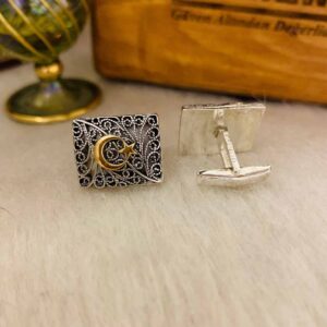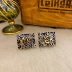 - Ayyıldız Gümüş Telkari Kare Kol Düğmesi modelimiz kişiye özel yapılır.