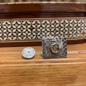 Artuklu Telkari, tarihi gümüş işleme sanatını, günümüz modern takı işlemeciliğiyle birleştirerek, tamamen müşterisine özel tasarımlar üretmektedir. Artuklu Telkari de, güvenli ve kolay alışveriş imkanı ile gümüş işleme ve altın kaplama gümüş çeşitleri bulunmaktadır. İncelediğiniz, Ayyıldız Gümüş Yaka Rozeti tamamen el işçiliği ile size özel üretilecektir.