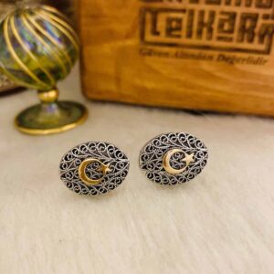 Ayyıldız Telkari Gümüş Oval Kol Düğmesi