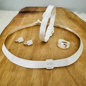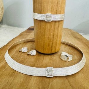 - Baget model setimiz 5 sıra bileklik, 5 sıra kolye, küpe ve yüzükten oluşmaktadır.