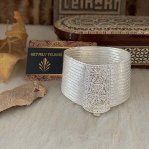 Artuklu Telkari, tarihi gümüş işleme sanatını, günümüz modern takı işlemeciliğiyle birleştirerek, tamamen müşterisine özel tasarımlar üretmektedir. Artuklu Telkari de, güvenli ve kolay alışveriş imkanı ile gümüş işleme ve altın kaplama gümüş çeşitleri bulunmaktadır. İncelediğiniz, Bayan Trabzon Hasırı Gümüş Bilezik tamamen el işçiliği ile size özel üretilecektir.