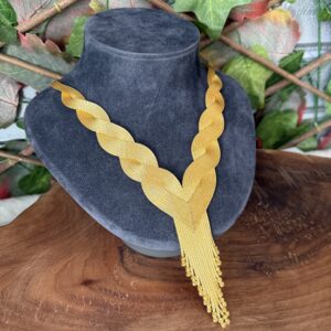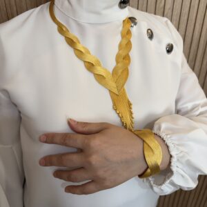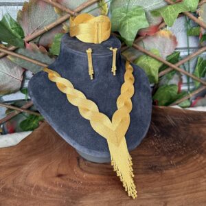 - Örgülü kolye, bileklik ve küpeden oluşmaktadır.