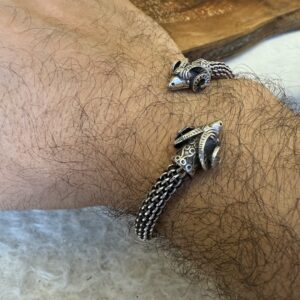 Artuklu Telkari, tarihi gümüş işleme sanatını, günümüz modern takı işlemeciliğiyle birleştirerek, tamamen müşterisine özel tasarımlar üretmektedir. Artuklu Telkari de, güvenli ve kolay alışveriş imkanı ile gümüş işleme ve altın kaplama gümüş çeşitleri bulunmaktadır. İncelediğiniz, El İşi Gümüş Koç Baş Bay Bayan Bilezik tamamen el işçiliği ile size özel üretilecektir.