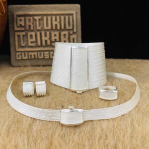 Artuklu Telkari, tarihi gümüş işleme sanatını, günümüz modern takı işlemeciliğiyle birleştirerek, tamamen müşterisine özel tasarımlar üretmektedir. Artuklu Telkari de, güvenli ve kolay alışveriş imkanı ile gümüş işleme ve altın kaplama gümüş çeşitleri bulunmaktadır. İncelediğiniz, El İşi Gümüş Trabzon Hasır Takı Seti tamamen el işçiliği ile size özel üretilecektir.