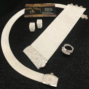 - Telkari model setimiz 21 sıra bileklik, 7 sıra kolye, küpe ve yüzükten oluşmaktadır.