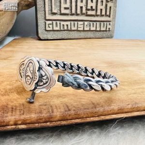 Artuklu Telkari, tarihi gümüş işleme sanatını, günümüz modern takı işlemeciliğiyle birleştirerek, tamamen müşterisine özel tasarımlar üretmektedir. Artuklu Telkari de, güvenli ve kolay alışveriş imkanı ile gümüş işleme ve altın kaplama gümüş çeşitleri bulunmaktadır. İncelediğiniz, Erzurum Burması Gümüş Bayan Bileziği tamamen el işçiliği ile size özel üretilecektir.