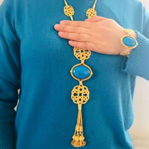 - Takı setimiz kolye, bileklik ve küpeden oluşmaktadır.