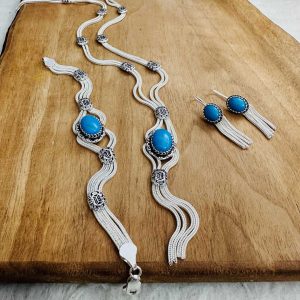 • Takı setimiz gerdanlık, bileklik ve küpeden oluşmaktadır.