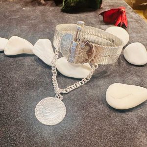 Artuklu Telkari, tarihi gümüş işleme sanatını, günümüz modern takı işlemeciliğiyle birleştirerek, tamamen müşterisine özel tasarımlar üretmektedir. Artuklu Telkari de, güvenli ve kolay alışveriş imkanı ile gümüş işleme ve altın kaplama gümüş çeşitleri bulunmaktadır. İncelediğiniz, Gümüş Diyarbakır Hasırı Bayan Bilezik Modeli tamamen el işçiliği ile size özel üretilecektir.