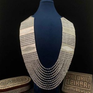 Artuklu Telkari, tarihi gümüş işleme sanatını, günümüz modern takı işlemeciliğiyle birleştirerek, tamamen müşterisine özel tasarımlar üretmektedir. Artuklu Telkari de, güvenli ve kolay alışveriş imkanı ile gümüş işleme ve altın kaplama gümüş çeşitleri bulunmaktadır. İncelediğiniz, Gümüş Dubai Takı Seti tamamen el işçiliği ile size özel üretilecektir.