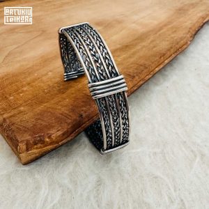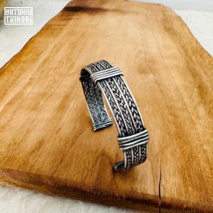Artuklu Telkari, tarihi gümüş işleme sanatını, günümüz modern takı işlemeciliğiyle birleştirerek, tamamen müşterisine özel tasarımlar üretmektedir. Artuklu Telkari de, güvenli ve kolay alışveriş imkanı ile gümüş işleme ve altın kaplama gümüş çeşitleri bulunmaktadır. İncelediğiniz, Gümüş Erkek Bileziği tamamen el işçiliği ile size özel üretilecektir.