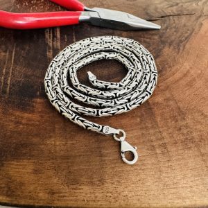 Artuklu Telkari, tarihi gümüş işleme sanatını, günümüz modern takı işlemeciliğiyle birleştirerek, tamamen müşterisine özel tasarımlar üretmektedir. Artuklu Telkari de, güvenli ve kolay alışveriş imkanı ile gümüş işleme ve altın kaplama gümüş çeşitleri bulunmaktadır. İncelediğiniz, Gümüş kral erkek zincir kolye modeli tamamen el işçiliği ile size özel üretilecektir.