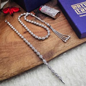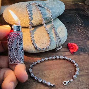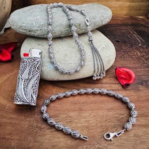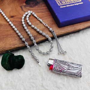 Gümüş Tesbih Çakmak Kılıfı ve Bileklik Erkek Kombini