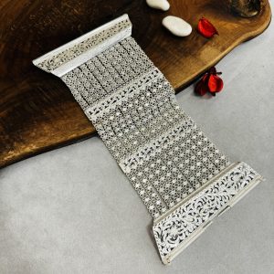 Artuklu Telkari, tarihi gümüş işleme sanatını, günümüz modern takı işlemeciliğiyle birleştirerek, tamamen müşterisine özel tasarımlar üretmektedir. Artuklu Telkari de, güvenli ve kolay alışveriş imkanı ile gümüş işleme ve altın kaplama gümüş çeşitleri bulunmaktadır. İncelediğiniz, Gümüş Urfa Akıtması Yıldızlı Bileklik tamamen el işçiliği ile size özel üretilecektir.