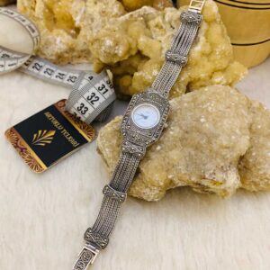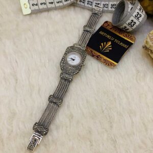 Artuklu Telkari, tarihi gümüş işleme sanatını, günümüz modern takı işlemeciliğiyle birleştirerek, tamamen müşterisine özel tasarımlar üretmektedir. Artuklu Telkari de, güvenli ve kolay alışveriş imkanı ile gümüş işleme ve altın kaplama gümüş çeşitleri bulunmaktadır. İncelediğiniz, Hasır Kordonlu Markazit Gümüş Bayan Kol Saati bileğinize özel imal edilecektir.