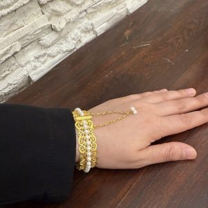 Artuklu Telkari, tarihi gümüş işleme sanatını, günümüz modern takı işlemeciliğiyle birleştirerek, tamamen müşterisine özel tasarımlar üretmektedir. Artuklu Telkari de, güvenli ve kolay alışveriş imkanı ile gümüş işleme ve altın kaplama gümüş çeşitleri bulunmaktadır. İncelediğiniz, İncili Altın Modeli Telkari Bayan Bileziği tamamen el işçiliği ile size özel üretilecektir.