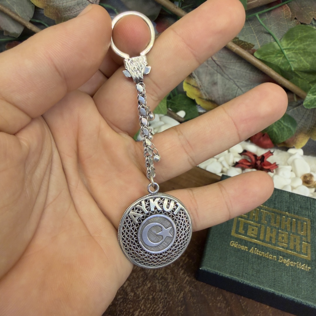 - İsme Özel Ayyıldız Telkari Gümüş Anahtarlık modelimiz kişiye özel yapılır.