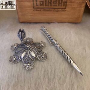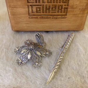 - Kalemli Telkari İşlemeli Gümüş Masa İsimliği modelimiz kişiye özel yapılır.