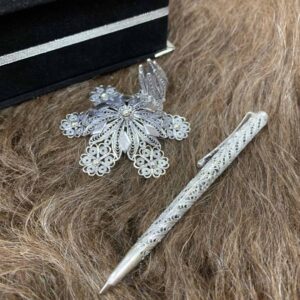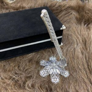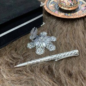 Artuklu Telkari, tarihi gümüş işleme sanatını, günümüz modern takı işlemeciliğiyle birleştirerek, tamamen müşterisine özel tasarımlar üretmektedir. Artuklu Telkari de, güvenli ve kolay alışveriş imkanı ile gümüş işleme ve altın kaplama gümüş çeşitleri bulunmaktadır. İncelediğiniz, Kalemli Telkari İşlemeli Gümüş Masa İsimliği tamamen el işçiliği ile size özel üretilecektir.