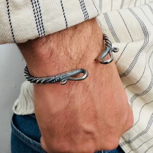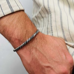 Artuklu Telkari, tarihi gümüş işleme sanatını, günümüz modern takı işlemeciliğiyle birleştirerek, tamamen müşterisine özel tasarımlar üretmektedir. Artuklu Telkari de, güvenli ve kolay alışveriş imkanı ile gümüş işleme ve altın kaplama gümüş çeşitleri bulunmaktadır. İncelediğiniz, Kancalı El İşi Telkari Gümüş Erkek Bileziği tamamen el işçiliği ile size özel üretilecektir.